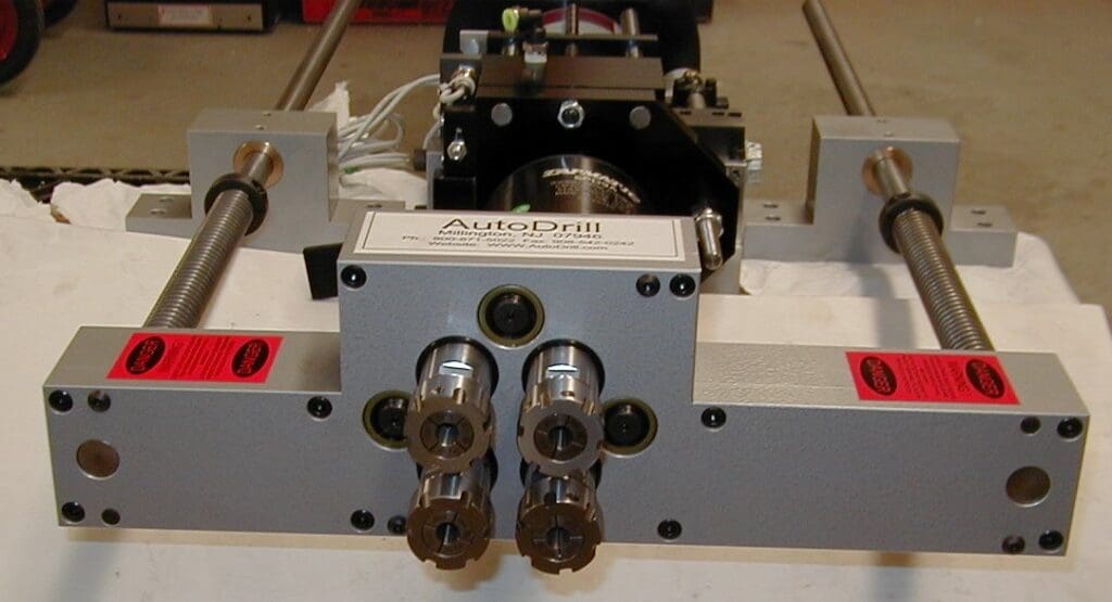 Multiple Spindle Automatic Tapping Machine May 19, 2011 How-To New Products AutoDrill Recently Built a Four Spindle Automatic Tapping Machine for a High Volume Producer. Guide Rod System for MultiTap Automatic Tapper Top View – 5000 Series AutoTap 5000 Series AutoTap – Side View Tapping Four Holes at Once!