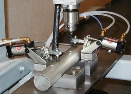When Drilling Round Tube, AutoDrill units are second to none. Whether it is a key-type chuck set-up as shown for smaller holes or annular cutters for large holes in larger tubes, we have a solution for you. You can click below for more information on the self feed AutoDrill 2000 series options.