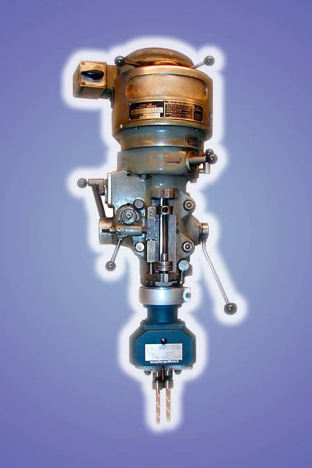The Bridgeport vertical milling machine was a “must have” piece of machinery for any shop that did metalworking. It was so popular that there are still “clones” of it being sold in the USA and overseas. The Bridgeport milling machine is excellent for Multi-Spindle Drill and Tap Head operations. It provides a solid foundation at a relatively low cost. Its extra long work table or bed length is just about perfect for stabilizing the work piece – even when the multi-drill spindle head is up to 36″ long.