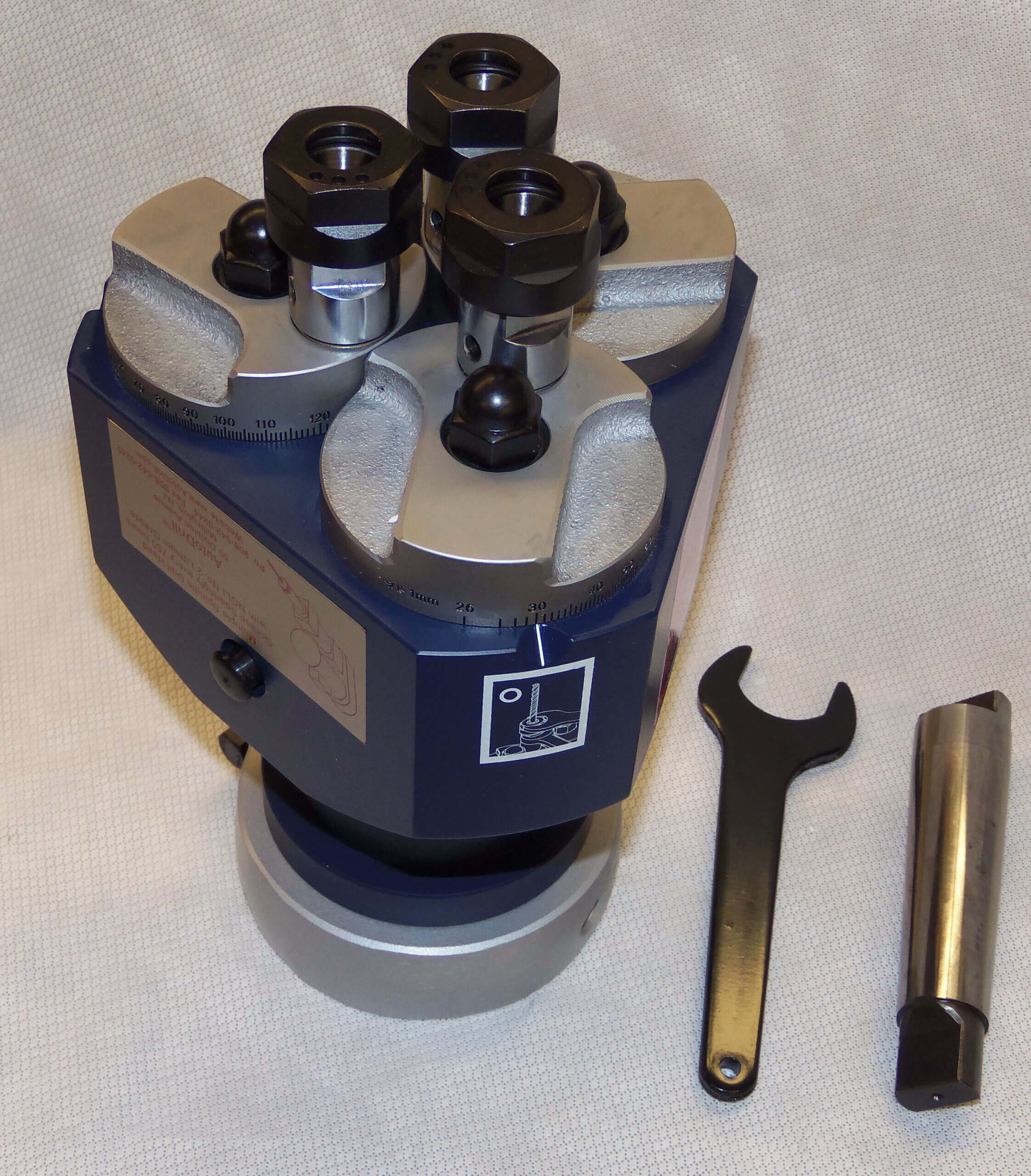 Three Spindle Drill Head, Adjustable for 1.260″ to 4.566″ BCD/PCD (32-116mm), ER16 Style Spindles. Maximum Tool Shank Capacity 3/8″ or 10MM.