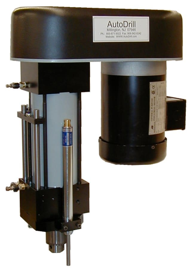 The 5000 AutoDrill series is designed for automatic drilling of larger holes and other heavy duty operations. It comes standard with features that make it easy to setup, adjust and maintain. All operations are performed with a standard electric motor and a small volume of shop air. This keeps the operating costs to a minimum.