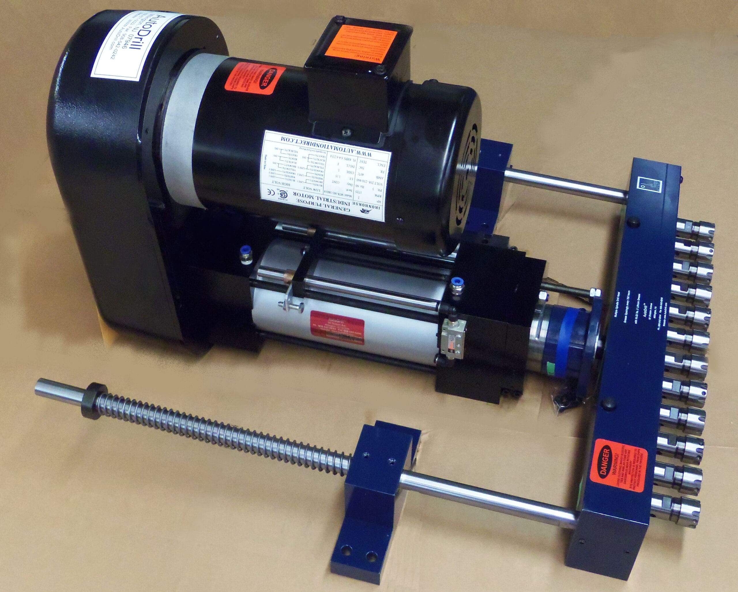 The 5000 AutoDrill series is offered for heavy duty or large hole operations or when the most robust and reliable unit is necessary. The features on the 5000 series unit make it very simple to maintain and operate. Its adjustment methods are easy to understand. Although it is an extremely capable unit, many find it extremely simple to use. Typically, a customer will ask for a standard electric motor drive and the unit is stroked by a small volume of shop air. This keeps the operating costs to a minimum. Because of its efficiency, your costs are kept low. Whether this helps you make more product in the same amount of time (cost savings) or simply helps you to keep up with high volume requests (higher production), the 5000 series self-feeder unit is an excellent choice.
